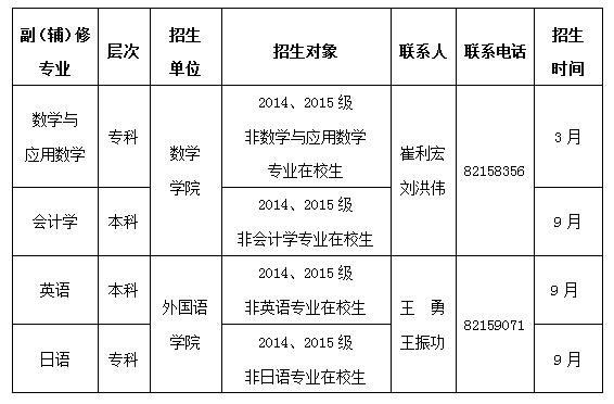 2016年副(辅)修专业招生通知(教学工作第686期)
