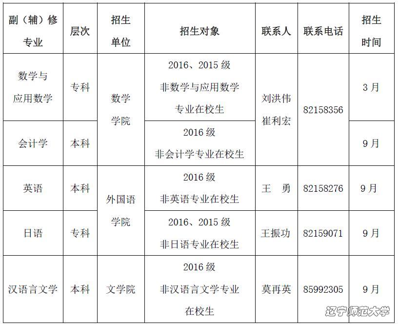 2017年副(辅)修专业招生通知(辽师大教发[2017]16号)
