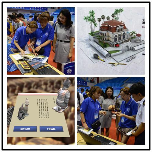 展示会上,教育部高等教育司郝杰主任对我校张敏同学的《AR互动展示研究与应用》项目表示了浓厚的兴趣,仔细询问了项目的情况及市场应用前景,并听取了项目成员的介绍。